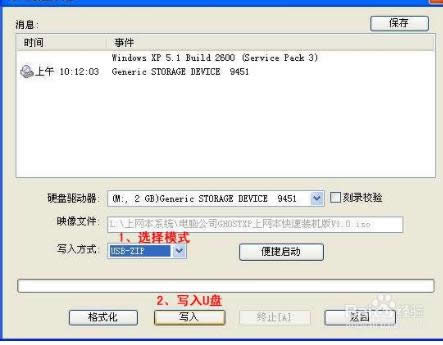 usb系統(tǒng)重裝下載安裝教程圖3 第三步,選擇寫入模式,制作啟動(dòng)盤(寫入前請(qǐng)備份重要數(shù)據(jù))。模式有USB-ZIP與USB-HDD兩種,不同有主板支持的模式有差別,大多數(shù)情況下支持USB-ZIP。