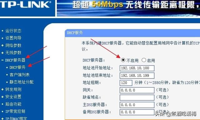 這種連接方式不使用二級路由器WAN口只用作交換機,所以比較簡單。然后單擊進入無線路由器設置界面DHCP服務器---DHCP服務”,設置DHCP服務器為不啟用。此時,第一個有線路由器被動態分配IP地址。這里需要注意的是:因為IP地址由一級主路由分配,如果斷開一級主路由與二級副路由的連接,二級副路由的管理界面將無法使用IP進入地址。