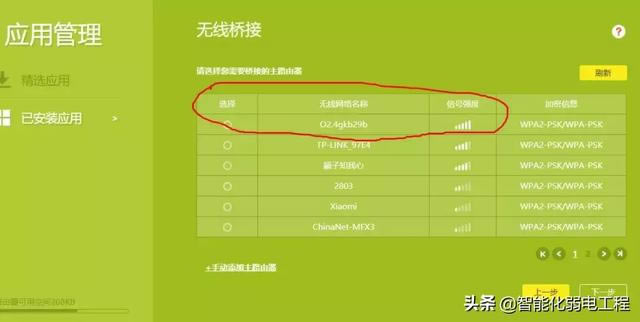 選擇主路由器wifi名稱,然后點擊下一步,輸入主路由器的wifi密碼(所以記住主路由器wifi密碼)。