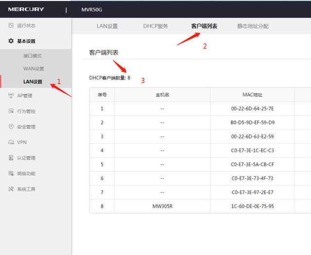 水星MVR50G全千兆多WAN口企業級路由器可同時連接4條寬帶。注:無線功能帶機量約50臺,適用于中小企事業單位。此外,這種路由器也有AP管理功能,即AC管理器,但需要水星無線AP哦,其他牌不能滴。 ![]() 正面圖 還支持路由器IPSec VPN、PPTP VPN和L2TP VPN等待主流多協議VPN通道,遠程通信快速安全。多條VPN渠道滿足分支機構與企業總部、分支機構、公司網絡與出差員工、企業與合作伙伴之間的建議VPN通道需求 一、路由器登錄。 電腦連到LAN口,或連到WAN/LAN共用口,IP設置為自動訪問,打開瀏覽器,輸入地址欄:【melogin.cn】,登錄路由器配置頁面,進入后設置新的管理員密碼,設置后,記錄并記住,以后調試路由器使用此密碼! 電腦連到LAN口,或連到WAN/LAN共用口,IP設置為自動訪問,打開瀏覽器,輸入地址欄:【melogin.cn】,登錄路由器配置頁面,進入后設置新的管理員密碼,設置后,記錄并記住,以后調試路由器使用此密碼!不要忘記,不要忘記,不要忘記!!! 二、網絡設置。 登錄后點【基本設置】【接口模式】,每個端口的功能都可以設置。如果您選擇一條寬帶單條WAN口】,選擇相應的多條寬帶WAN口數,并記錄哪只寬帶貓接哪個口,以便以后調試相應的寬帶上網方式。接口設置 WAN網絡供應商提供的口設置和三種上網方式大多是寬帶貓帶路由功能,所以這里的上網方式是動態的IP】即自動獲取方式,如果是拔號方式,選擇【PPPoE填寫正確供應商提供的帳戶和密碼。專線一般是靜態的IP】。設置互聯網模式 設置正確的證點保存,幾秒鐘后就會看到連接狀態,如果已經連接,就有可能正常上網! 如果多條寬帶同時聚集在互聯網上,則需要設置流量平衡: 均衡模式 連接均衡:多WAN根據總連接數合理分配給每個口WAN口,保證每一個WAN口利用率相同。平衡帶寬:多WAN接口流量比等于設定的接口帶寬比。如果接口 1 和接口 2 帶寬比為 2:1,使用帶寬平衡后,通過接口 1 和接口 2 流量比約為 2:1。 按需設置均衡設置流量 三、開啟DHCP服務開啟 DHCP 四、檢查路由器下連接的設備檢查路由下連接的設備