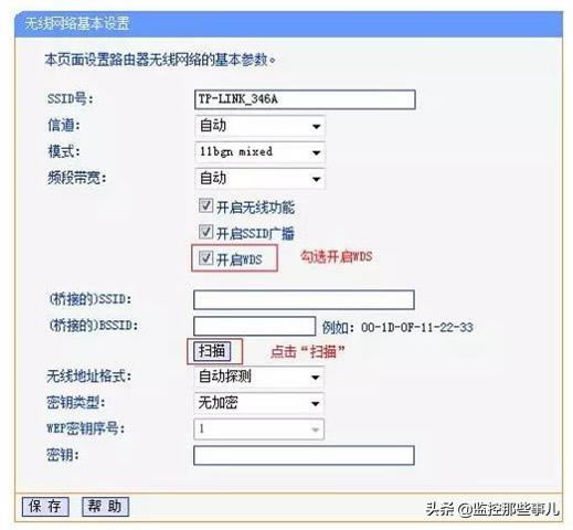 通常主路由器AIP:192.168.1.1,所以路由器B是192.168.1.2;還有一些路由器默認為192.168.0.1,那么路由器B設置為:192.168.0.2 保證路由器IP在同一個網段,不了解網段也沒關系。 2.打開路由器B的基本無線設置,檢查WDS,然后掃描到第一個路由器。 2.打開路由器B的基本無線設置,檢查WDS,然后掃描到第一個路由器。