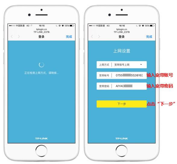 3、連接Wi-Fi之后,手機會自動彈出路由器的設置頁面。如果沒有自動彈出,請打開瀏覽器,輸入地址欄tplogin.cn(部分早期路由器管理地址為192.168.1.1)。路由器登錄密碼設置在彈出窗口中(密碼長度在6-32位間隔),以后管理路由器(登錄界面)時,請妥善保管。如下圖: