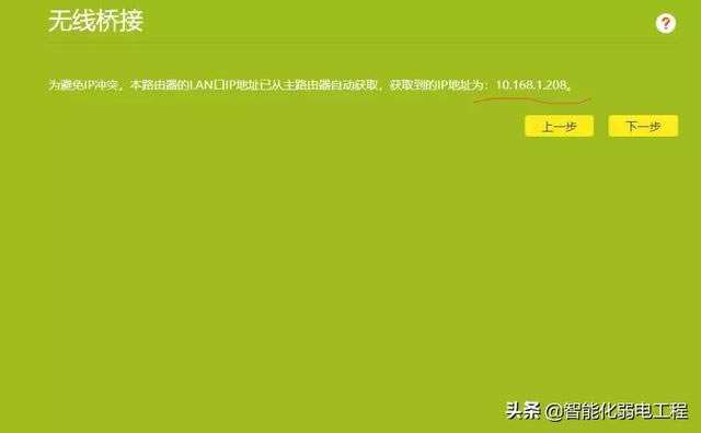 橋接后:副路由器的登錄地址變?yōu)?0.168.1.208,主路由器ip地址為同一網(wǎng)段。因此,如果以后進(jìn)入副路由器,則需要輸入ip地睛10.168.1.208進(jìn)入了。因此,如果以后進(jìn)入副路由器,則需要輸入ip地睛10.168.1.208進(jìn)入了。
