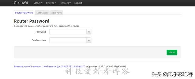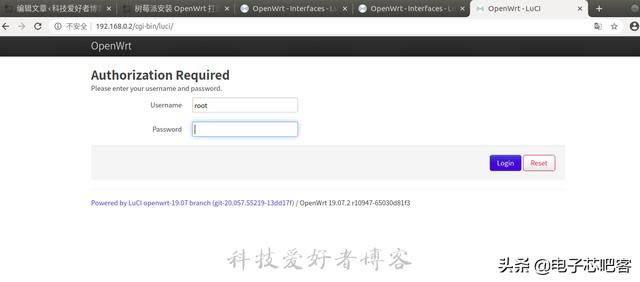使用新地址登錄樹莓派openwrt,即在瀏覽器中使用http://192.168.0.2/登錄。