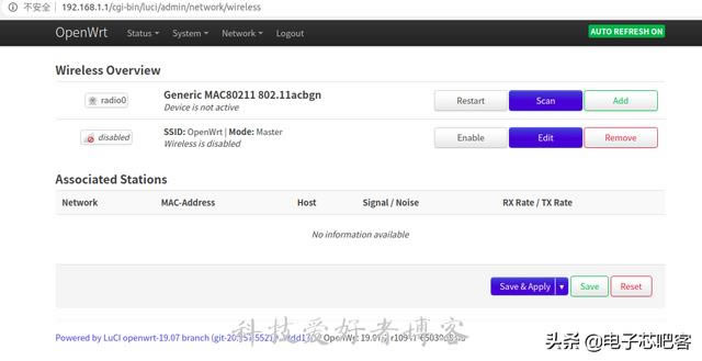 點(diǎn)擊“network”-“Wireless”,然后將SSID:OpenWrt 打開。