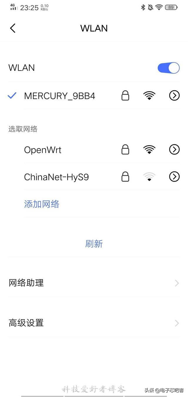 修改配置后,選擇Save & Apply,無(wú)線配置會(huì)生效,打開手機(jī)就能看到,OpenWrt連接需要密碼。