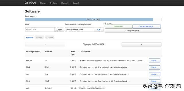 Openwrt安裝后是英文版,對(duì)普通人不友好,可以通過(guò)安裝中文漢化包來(lái)解決。步驟如下: 1.更新Openwrt軟件包