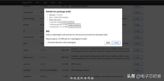 輸入軟件包搜索框luci-i18n-base-zh-cn跳出的確認(rèn)框Really attempt to install luci-i18n-base-zh-cn?選擇安裝