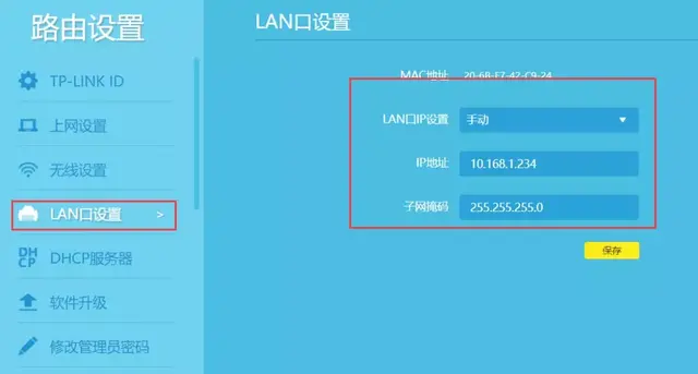 ,最后一段不同;這是使用二級路由器作為交換機LAN口IP地址的修改原則。