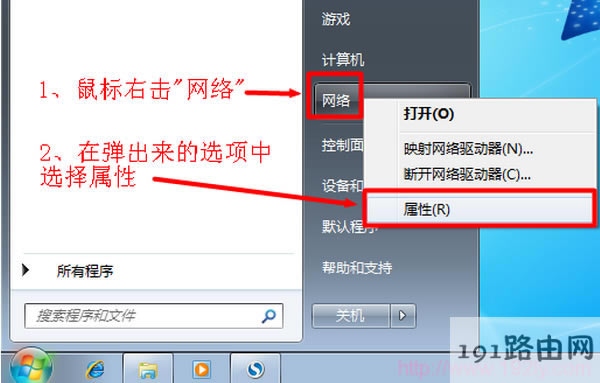 1、右擊“網(wǎng)絡(luò)”選擇”屬性”.