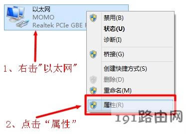 3、右擊“以太網(wǎng)”選擇“屬性”