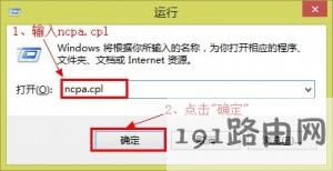 2、在運(yùn)行程序里面輸入ncpa.cpl—>點擊”確定”(或者按鍵盤上面的回車鍵)。