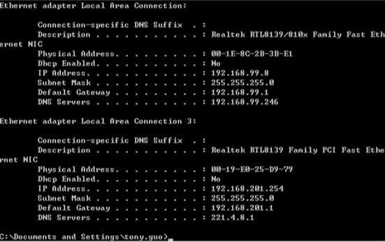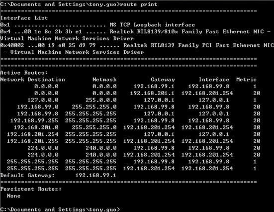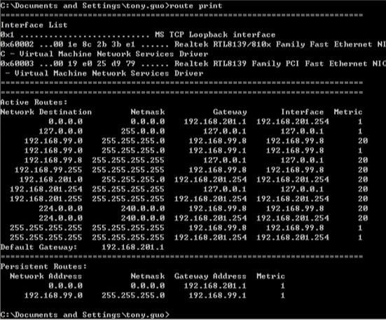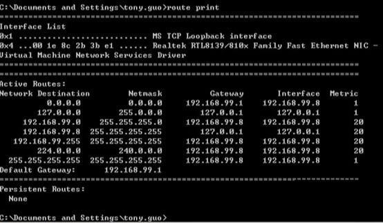 | 路由器(Router)是連接兩個或多個網絡的硬件設備,在網絡間起網關的作用,是讀取每一個數據包中的地址然后決定如何傳送的專用智能性的網絡設備。 (windows顯示路由信息) 大多數網管朋友都熟悉路由器的路由表,但對于路由器windows可能知道路由表的人相對較少。今天我們來看看windows路由表。 一、 windows路由表條目解釋 1. 使用ipconfig /all查看網卡信息 ![]() 2. 使用route print命令查看路由表信息,如下圖: ![]() 3. 路由表信息解釋 1)名詞解釋: Active Routes:活動的路由 Network destination :目的網段 Netmask:子網掩碼 Gateway:又稱下一跳路由器的網關。在發送IP在數據包中,網關定義了的網絡目的地址定義了數據包發送到的下一個跳躍服務器。在發送IP當數據包時,網關定義了數據包發送到特定網絡目的地址的下一個跳躍服務器。如果網絡直接連接到本地計算機,網關通常是本地計算機對應的網絡接口,但接口必須與網關一致;如果是遠程網絡或默認路由,網關通常是本地計算機連接到的服務器或路由器。 Interface:界面,界面定義了當地計算機用于發送數據包的特定網絡目的地址。網關必須位于與接口相同的子網(默認網關除外),否則使用此路由項時需要調用其他路由項,可能導致路由死鎖。 Metric:跳數,跳數用于指出路由的成本,通常情況下代表到達目標地址所需要經過的跳躍數量,一個跳數代表經過一個路由器。跳數越低,路由成本越低,優先級越高。 Persistent Routes:靜態固化路由手動配置 2)第一條路由信息:缺少路由 當系統收到目的地址不在路由表中的數據包時,系統將數據包通過192.168.99.這個接口發送到缺省網關192.168.99.1。 3)第二條路由信息:本地環路 當系統接收到一個發往目標網段127.0.0.當0的數據包時,系統將接收發送到該網段的所有數據包。 4)第三條路由信息:直接連接網段路由記錄 當系統接收到發送到目的網段192時.168.99.0/24的數據包時,系統會將該數據包通過192.168.99.發送這個接口。 5)第四條路由信息:本地主機路由 當系統接收到目標時ip地址為本地網卡ip當地址的數據包時,系統接收數據包。 6)第五條路由信息:本地廣播路由 當系統收到發送到直接網段的本地廣播數據包時,系統將數據包從192.168.99.這個接口以廣播的形式發送。 7)第六條路由信息:組播路由 當系統收到組播數據包時,系統將數據包從192.168.99.該接口以組播的形式發送。 8)第七條路由信息:廣播路由 當系統收到絕對廣播數據包時,系統將通過192年通過數據包.168.99.發送這個接口。 9)Default Gateway(缺省網關) 二、windows路由表操作 windows路由表的設置主要通過route命令,ROUTE命令格式如下: ROUTE[-f][-p][command[destination][MASK netmask][gateway][METRIC metric][IF interface] 其中 –f 參數用于清除路由表,-p該參數用于永久保留由(即系統重啟時路由不會丟失)。 Command主要有PRINT(打印)、ADD(添加)、DELETE(刪除)、CHANGE(修改)共4個命令。 Command主要有PRINT(打印)、ADD(添加)、DELETE(刪除)、CHANGE(修改)共4個命令。 Destination代表要實現的目標IP地址。 MASK是子網掩碼的關鍵詞。Netmask代表具體的子網掩碼,如果不解釋,默認為255.255.255.255(單機IP地址)。如果代表所有出口子網掩碼,0.0.0.0。 Gateway代表出口網關。 其他interface和metric一般默認代表特殊路由的接口數和到達目標地址的跳數。 三、雙網卡路由配置實例公司有兩個網絡:一個是辦公網絡192.168.99.0/24網關為:192.168.99.一是訪問internet的商務網絡192.168.201.0/24網關為:192.168.201.1。現在有一臺電腦用兩張網卡連接公司辦公網絡,IP地址為192.168.99.8.連接另一個商業網絡,IP地址為192.168.201.254。這臺電腦現在需要訪問辦公網絡和商業網絡。 1. 我們可以用ipconfig /all命令查看計算機的網卡設置,如下圖所示: