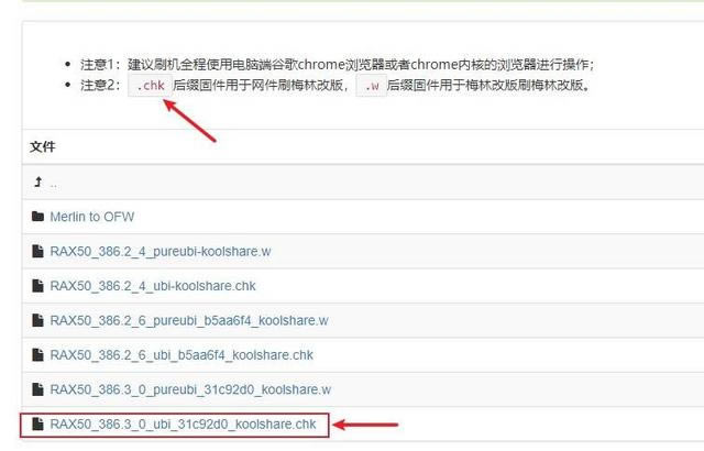 5.打開后可以看到RAX50固件下載地址! 值得一提的是,這里分別有 .chk 和 .w 后綴的固件,我們第一次安裝,就選擇 .chk最新版本的固件直接下載: