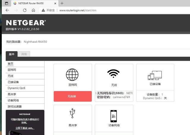 簡單初始化完成后,我們就可以登錄網件的后臺頁面了。 可見網件還是那個網件,界面幾年來一直一致: