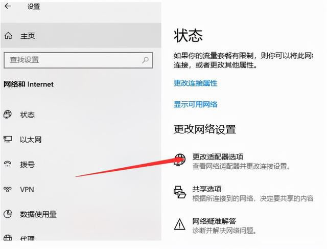 2.單擊右側(cè)的更改適配器選項。
