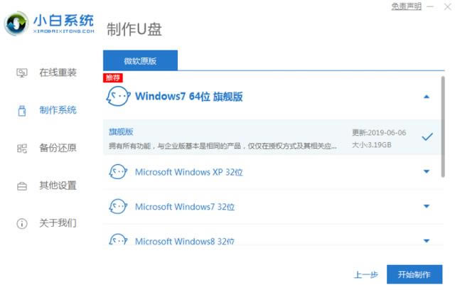 U盤重裝系統是一種非常有用的重裝系統方法,可以修復計算機系統的許多故障問題.有網友想用u盤重裝win7,不知具體怎么重裝win7系統.下面教你u盤重裝win7系統教程.本文來源于裝機吧系統網絡http://www.zhuangjiba.com/jiaocheng/25971.html 1.首先在小白系統官網下載安裝小白一鍵重新安裝系統軟件打開,u插入電腦。關閉防病毒軟件,點擊界面左側的生產系統,點擊下一步開始。關閉防病毒軟件,點擊界面左側的生產系統,點擊下一步開始。 ![]() 2.檢查安裝情況win點擊界面右下角的開始制作按鈕。 ![]() 3.提示啟動u盤制作成功后,可直接拔出u盤。 ![]() 4.將u插入需要重新安裝的計算機,啟動并快速連續按下熱鍵,進入快速啟動菜單(注:啟動熱鍵通常提示在計算機品牌標志下)。 ![]() 5.進入快速啟動菜單界面,選擇u盤啟動項按回車鍵進入PE選擇界面。 ![]() 6.按回車鍵啟動win10x64PE(內存大于2G)。