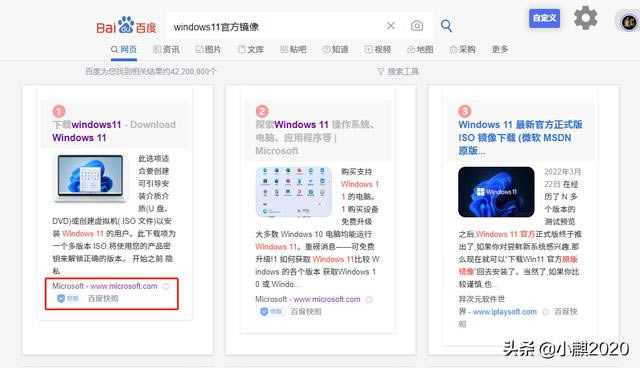 下載以上軟件后,私信小白:系統激活 獲取系統激活工具 接著往下看,現在需要獲取今天的主角,一個純凈的系統鏡像(無任何捆綁的官方鏡像) 有三種獲取方法 1.微軟官方獲取 百度搜索windows10官方鏡像或windows11官方鏡像 注意網址,避免踩雷 官方網站:https://www.microsoft.com/zh-cn/software-download/windows11