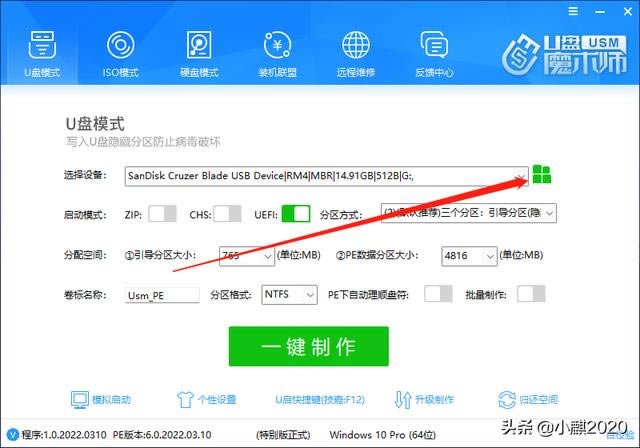 PE版本選擇 選擇后,我們點擊一鍵制作 提前備份U盤中的重要信息 提前備份U盤中的重要信息