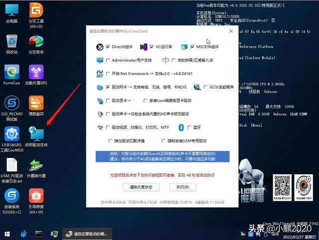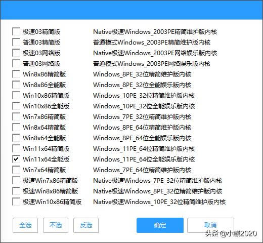 點擊右上角的自定義,選擇1-2個pe版本可以,不需要全選,減少PE系統占用容量