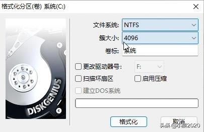 如果您正在使用硬盤并且已經有分區,請單擊現有系統磁盤(默認C磁盤,自行判斷),單擊菜單中的格式化和文件系統NTFS,選擇4096簇大小(4)K對齊),點擊格式化