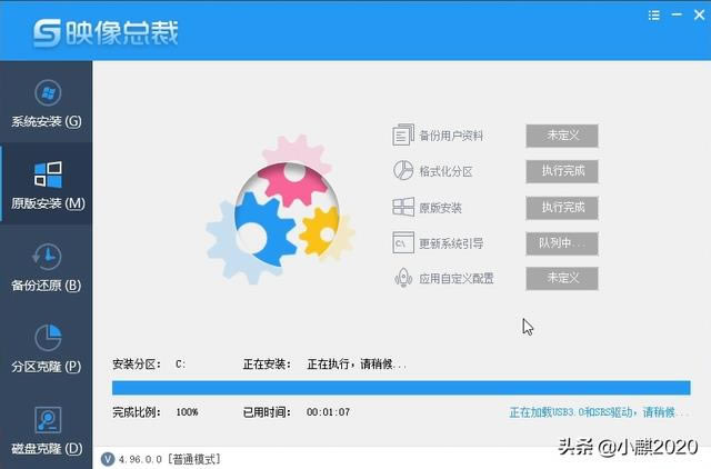 接下來是等待安裝5分鐘左右(取決于U盤和硬盤的速度)