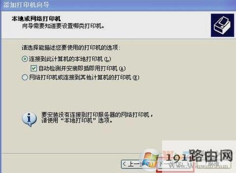 4、然后選擇本地打印機或網絡打印機,點下一步;