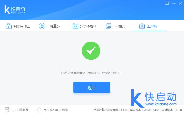 ![]() 3、稍等片刻,轉(zhuǎn)換NTFS格式的操作就完成了,關掉軟件即可,如下圖所示: