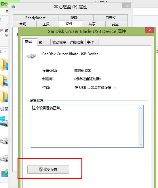 3、在屬性界面中,點擊“常規”選項卡,然后點擊“改變設置”。