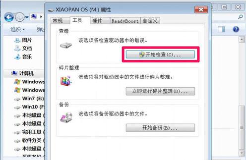 ![]() 3、在工具選項卡界面,有個查錯選項,主要是檢查各種驅動器中文件系統的錯誤,點擊“開始檢查”按鈕。