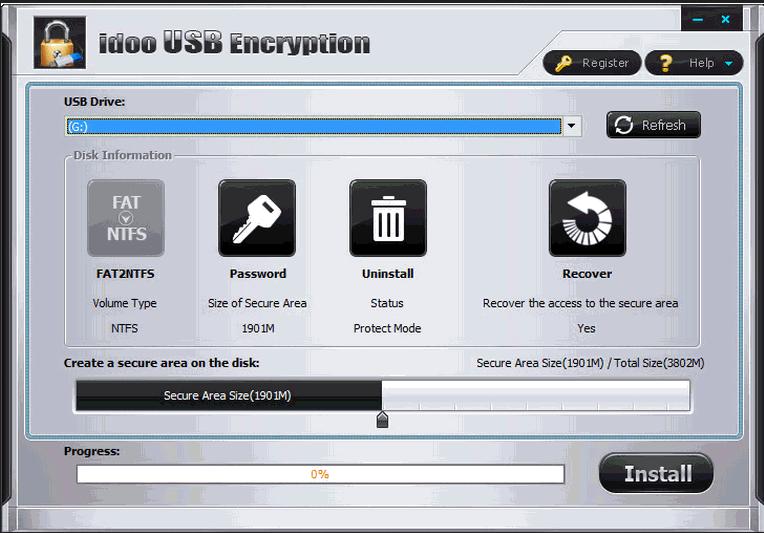 一樣通用任何U盤的加密軟件,它加密級(jí)別很高,軟件是中文的已經(jīng)注冊(cè)的版本,可以對(duì)任意文件夾進(jìn)行加密,跟上面的兩款不同的是,它不會(huì)分區(qū),只是對(duì)文件夾進(jìn)行加密,所以你必須把程序拷貝到U盤運(yùn)行,不能使用程序自帶的安裝到U盤功能,基于1024位AES加密算法,所以依然無(wú)法破解,加密后自己一定要記得密碼。
