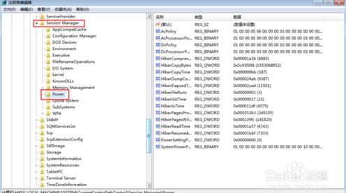 2、在注冊(cè)表中,依次點(diǎn)擊進(jìn)入 HKEY_LOCAL_MACHINE\SYSTEM\CurrentControlSet\Control\SessionManager\Power。