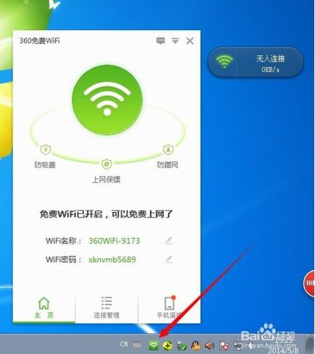 win7無線網(wǎng)卡怎么設(shè)置wifi教程圖4 4、點(diǎn)擊桌面右下角任務(wù)欄的免費(fèi)wifi圖標(biāo),打開主界面進(jìn)行設(shè)置,可以編輯無線wifi的名稱及密碼