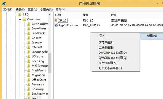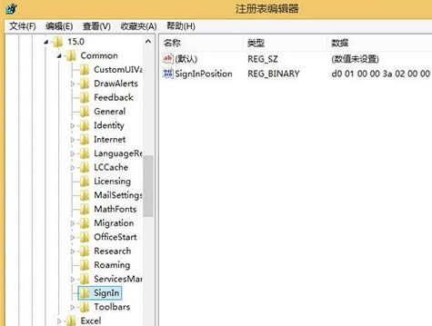 第三步,咱們?cè)谧筮叺倪x項(xiàng)中依次打開HKEY_CURRENT_USER\Software\Microsoft\Office\15.0\Common\SignIn。