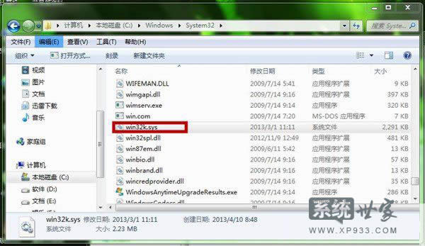 具體方法: 第一步、在電腦路徑C:\WINDOWS\system32目錄,找到win32k.sys系統文件。