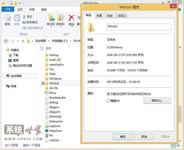 Windows 7,中文名稱視窗7,是由微軟公司(Microsoft)開發(fā)的操作系統(tǒng),內核版本號為Windows NT 6.1。Windows 7可供家庭及商業(yè)工作環(huán)境:筆記本電腦 、平板電腦 、多媒體中心等使用。Windows 7可供選擇的版本有:入門版(Starter)、家庭普通版(Home Basic)、家庭高級版(Home Premium)、專業(yè)版(Professional)、企業(yè)版(Enterprise)(非零售)、旗艦版(Ultimate)。 今天番茄花園查看Win7系統(tǒng)/Win8.1系統(tǒng) WinSxS文件夾實際大小教程告訴大家。談到Win7系統(tǒng)/Win8.1冗余,不得不提到這個WinSxS特殊文件夾。該文件夾位于C:\Windows目錄路徑下,里面存儲大量系統(tǒng)系統(tǒng)備份、更新補丁備份。隨著時間的推移,WinSxS也成為系統(tǒng)盤最大的文件夾。 對于普通用戶來說,最關心的是WinSxS文件夾為何持續(xù)變大?實際上,WinSxS文件夾具體功能為組件存儲,里面存儲了Windows重要組件功能,例如大家熟悉的C:\Windows\system32目錄。 而WinSxS文件夾自身與C:\Windows\system32目錄創(chuàng)建了硬鏈接,因此,我們很難在資源管理器直接查看實際大小,參考下圖: