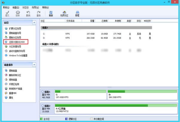 Windows 7,中文名稱視窗7,是由微軟公司(Microsoft)開發的操作系統,內核版本號為Windows NT 6.1。Windows 7可供家庭及商業工作環境:筆記本電腦 、平板電腦 、多媒體中心等使用。Windows 7可供選擇的版本有:入門版(Starter)、家庭普通版(Home Basic)、家庭高級版(Home Premium)、專業版(Professional)、企業版(Enterprise)(非零售)、旗艦版(Ultimate)。 今天系統之家 詳解ssd固態硬盤怎么裝系統方法告訴大家。XP系統被微軟終結之后,如今大家低配置的電腦都安裝了win7 精簡版,一般都是直接使用SSD固態硬盤安裝系統,以此來增加系統運行速度!但重裝系統是很多人都比較頭疼的問題,特別是用了比較久的硬盤,里面需要保存的東西太多,備份恢復時間過長,那么有沒有一種方法能將我們原來的系統遷移至新的SSD固態硬盤呢?下面就來看看教程吧。 更換SSD固態硬盤來安裝系統其實有非常簡單的辦法,在分區助手升級5.5之后,就再一次更新和增強了這個功能,打開最新版的分區助手專業版。 點擊左側的“遷移OS到SSD/HDD”功能。