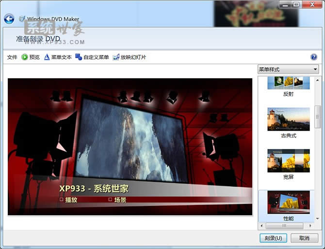 備注:可通過菜單文本自定義視頻光盤個性化,小編這里輸入:Xp933 - 系統世家 windows 7 的設計主要圍繞五個重點——針對筆記本電腦的特有設計;基于應用服務的設計;用戶的個性化;視聽娛樂的優化;用戶易用性的新引擎。 跳躍列表,系統故障快速修復等,這些新功能令Windows 7成為最易用的Windows。 |