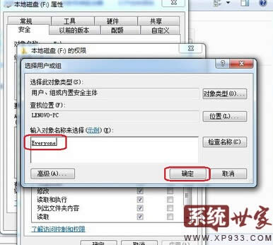在選擇用戶或組的界面中,在輸入對(duì)象名稱來(lái)選擇中我們就可以看到win7 everyone權(quán)限了,我們直接單擊確定就OK。