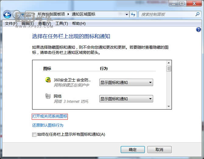 第2步:在打開的“任務欄和[開始]菜單屬性”窗口中找到通知區域附近的“自定義”按鍵并單擊此項。 第3步:在打開的通知區域圖標窗口中找到并單擊“打開或關閉系統圖標”此項。