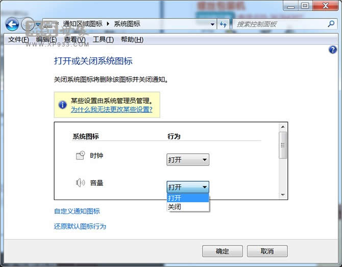 第4步:在竟是音量此項后面的行為列選擇“打開”此項,并確定。