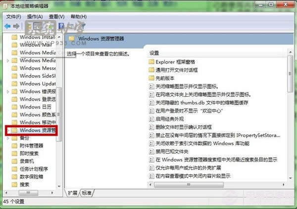 第二步、在“本地組策略編輯器”窗口,在左側,依次找到“用戶配置”-“管理模板”-“Windows 組件”-“Windows 資源管理器”。