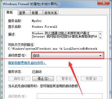 4、在屬性窗口中,點擊“啟動”,并且將啟動設置為自動啟動。