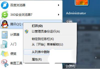 比如創建騰訊QQ快捷方式到開始菜單中,然后再將騰訊QQ的快捷方式從開始菜單列表中刪除。