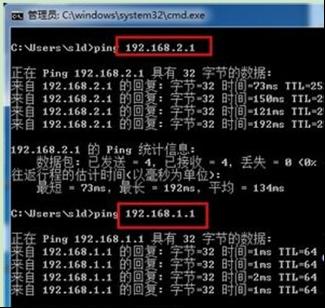 9、在打開的命令行窗口中,輸入“ping 192.168.2.1”命令后按回車,有返回值,說明通了