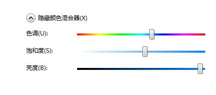 4、在“窗口顏色”設置界面中,也可通過“顯示顏色混合器”更改窗口的顏色,調節色調、飽和度和亮度,用戶只需拉動滑動條到自己喜歡的比例即可。