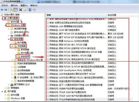 2、在打開的組策略編輯器中,依次展開“計算機配置——Windows設置——安全設置——本地策略——安全選項”。