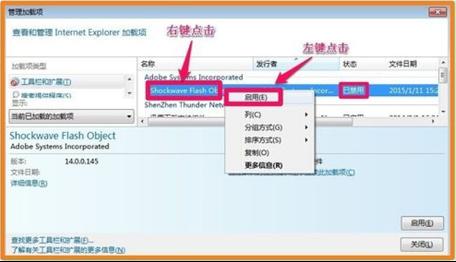 Windows 7,中文名稱視窗7,是由微軟公司(Microsoft)開發的操作系統,內核版本號為Windows NT 6.1。Windows 7可供家庭及商業工作環境:筆記本電腦 、平板電腦 、多媒體中心等使用。Windows 7可供選擇的版本有:入門版(Starter)、家庭普通版(Home Basic)、家庭高級版(Home Premium)、專業版(Professional)、企業版(Enterprise)(非零售)、旗艦版(Ultimate)。 Adobe Flash Player是一款多媒體專用播放程序,但有用戶遇到Adobe Flash Player 顯示被禁用的問題,怎么辦?現筆者介紹win7系統純凈安裝版Flash Player被禁用的破解技巧,具體如下:1、打開IE,點擊“工具——管理加載項(A)”。 ![]() 2、在打開的管理加載項,可看到Shockwave Flash Object已禁用; 3、在管理加載項窗口,在Shockwave Flash Object右鍵選擇啟用。點擊“關閉”退出管理加載項即可。 windows 7 的設計主要圍繞五個重點——針對筆記本電腦的特有設計;基于應用服務的設計;用戶的個性化;視聽娛樂的優化;用戶易用性的新引擎。 跳躍列表,系統故障快速修復等,這些新功能令Windows 7成為最易用的Windows。 |