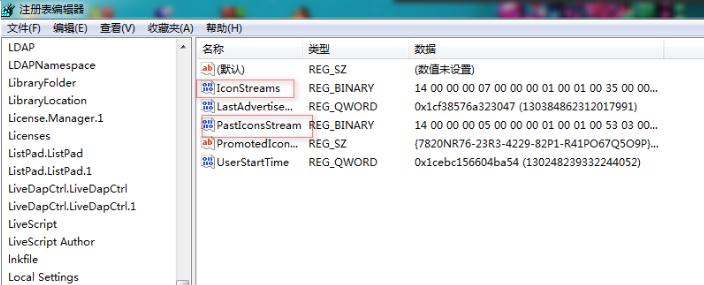3.然后在右側(cè)列表中找到IconStreams和PastIconsStreams兩個鍵值,按住Ctrl鍵同時選中兩個選項,之后將其刪除(不過建議先備份注冊表);