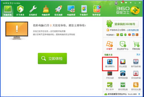1、打開360安全衛(wèi)士,在功能大全處可以看到有攝像頭的圖標,雙擊下就可以自動安裝了。